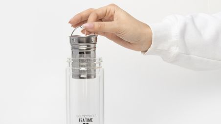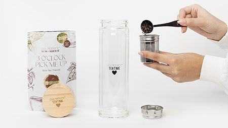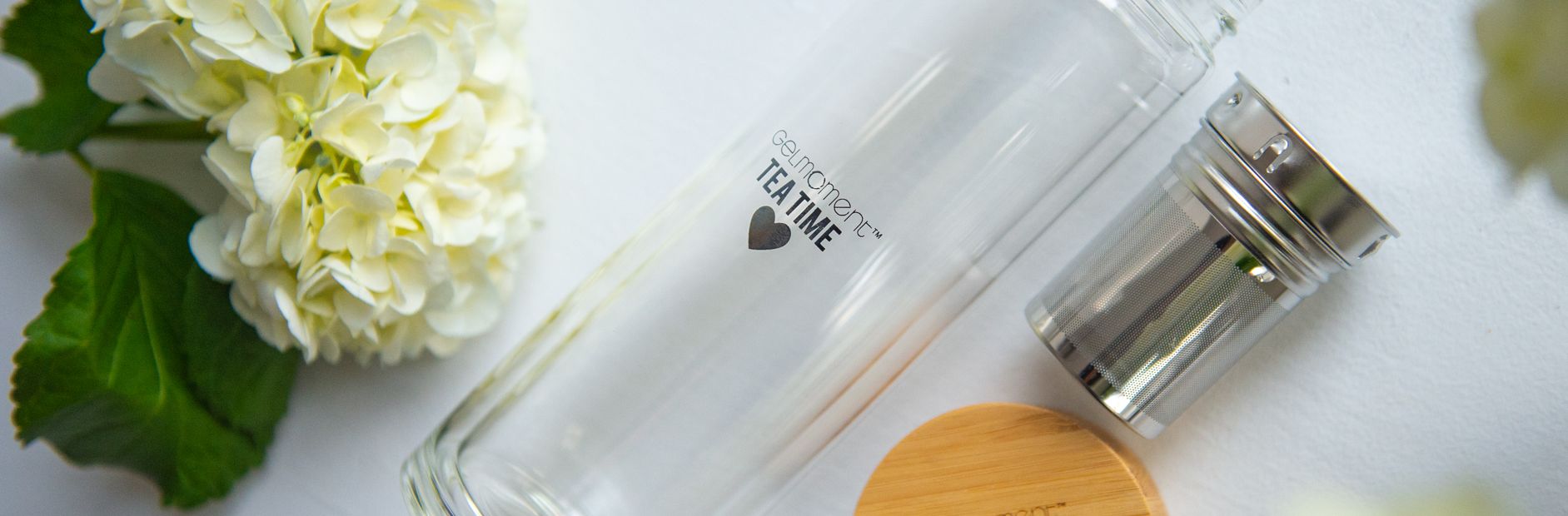 Enjoy your favourite GelMoment tea at home or on the go! This elegant double walled glass bottle with infuser will keep your drink hot or cold for up to 8 hours.