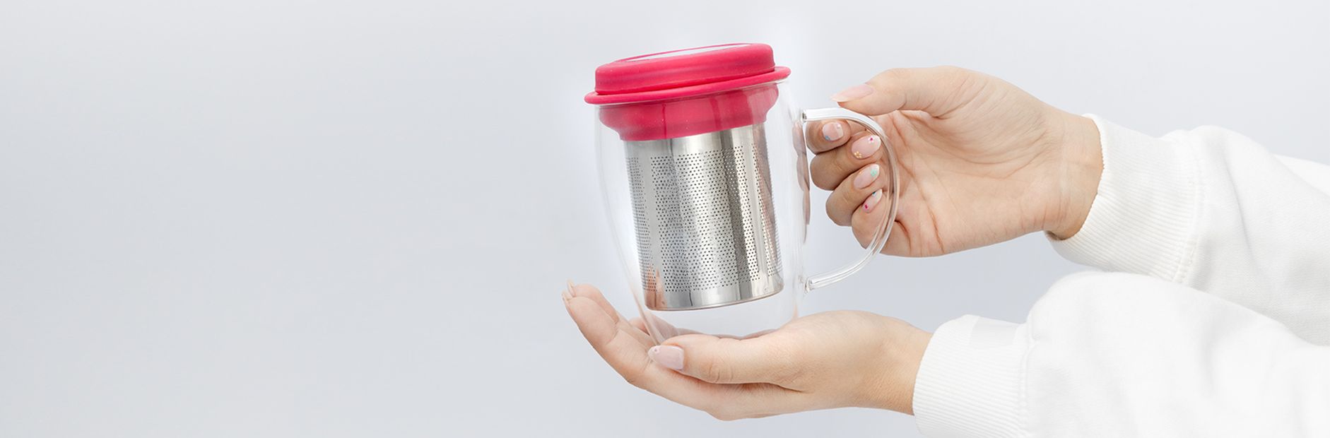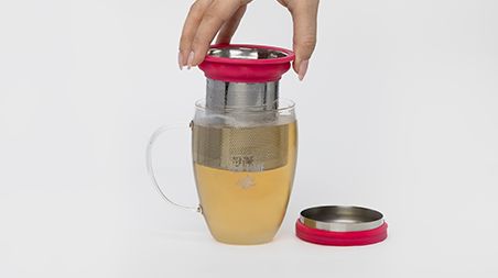 Brew tea easily with your GelMoment Glass Tea Mug! This mug comes with a fine stainless steel infuser, a lid that doubles as a saucer, and a silicone band. This non-slip silicone band is not just for looks, it also protects the rim of the glass from chipping, and it keeps the edges of your mug cool while keeping your tea hot!